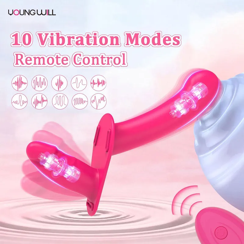 10 Customizable Patterns: Independent remote control operates both vibrating dildos separately or together.